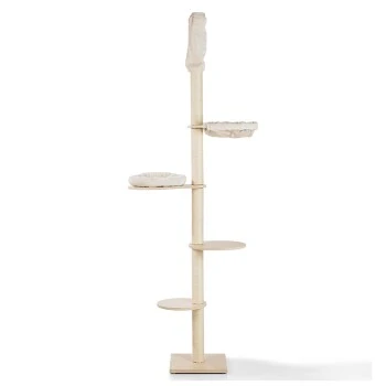 Mit den AniOne Deckenspanner kommt gewiss keine Langeweile auf. Der hochwertige Decken-Kratzbaum im modernen Holzdesign sieht nicht nur toll aus, er bietet deinem Stubentiger auch viel.