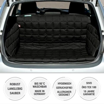 Mit einer Kofferraumdecke aus unserem Haus schützen Sie alle Seiten des Kofferraums vor Verschmutzung und zusätzlich die Stoßstange vor hässlichen Krallen-Kratzern beim Ein- und Ausstieg.