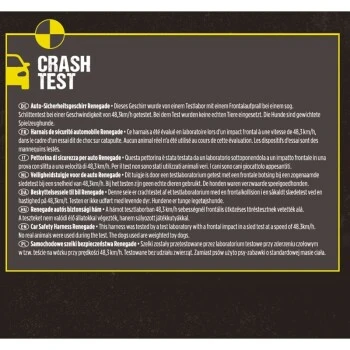 Das Sicherheitsgeschirr wurde speziell für den Gebrauch im Auto entwickelt und besteht aus qualitativ hochwertigem Nylon und Polyester. Die langlebige IXPE-Brustpalette verstärkt das Geschirr und sorgt für zusätzliche Sicherheit während der Fahrt. Die integrierte Polsterung sorgt für ein angenehmes Tragegefühl. Die Form des Geschirrs ist so gestaltet, dass die Zugkräfte im Falle eines Unfalls gleichmäßig auf die Brust des Hundes verteilt werden. Das Geschirr ist extra leicht konzipiert. Zwei Schnallen erleichtern das An- und Ablegen. Vier verstellbare Nylonriemen sorgen für einen optimalen Sitz. Das Geschirr wird direkt mit dem Sicherheitsgurt des Autos befestigt – es werden also keine zusätzlichen Sicherheitsgurte benötigt. Das Geschirr ermöglicht es dem Hund, sich hinzulegen, während er gleichzeitig an seinem Platz gesichert ist. Dies verhindert, dass sich der Hund zu viel bewegen kann. Das Geschirr wurde einem Crashtest bei 48,3 km/h unterzogen.