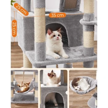 – Sicherheit geht vor: Hochwertige Materialien, ein verstärkter Sockel und ein Kippschutz sorgen für einen stabilen und sicheren Halt, damit Ihre Katzen sicher spielen können.