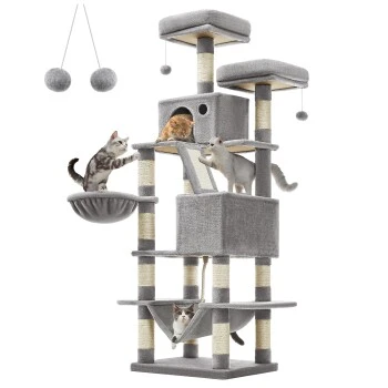 – Rundum-Spaß: Mit 2 Pompons, einem Spielseil, 2 Höhlen, einem Korb und einer Hängematte wird es Ihren Katzen auf diesem Kratzbaum nie langweilig.
