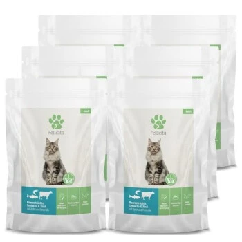 Verloren im Futterdschungel? Welches Futter ist wirklich mit hauseigenem Sachverstand und Expertise entwickelt? Bei Fellicita können Sie sicher sein, dass die Rezepturen für Katzen und Hunde aus tierärztlicher Feder nicht nur einmalig nach FEDIAF-Standards konzipiert wurden, sondern auch laufend gemäß aktuellen wissenschaftlichen Erkenntnissen überprüft werden. Das Sortiment umfasst Mono- und Multiprotein-Nassfutter mit kurzer Zutatenliste und transparenten Rezepturkonzepten; hergestellt in Deutschland. Die besonders leckere, weiche und feine Pastete überzeugt auch Gourmet-Katzen. Tierfreunde vertrauen Fellicita, denn: gesundes Futter – glückliches Leben!
