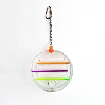 Treat Maze Wheel – Leckerchenrad Ein kreatives Spielzeug zum Leckerchen-Jagen! Das Treat Maze Wheel fördert nicht nur die Kreativität, sondern auch die Koordination des Vogels. Durch ein kleines Loch werden Leckereien ins Innere des Rades gesteckt. Durch cleveres Schieben landet das Leckerchen wieder vor der größeren Öffnung an der Unterseite. Für jede Ebene befindet sich ein Schlitz in der Außenseite des Rads, welcher Ihrem Vogel ein hin- & herschieben des Snacks ermöglicht. Ein wunderbares