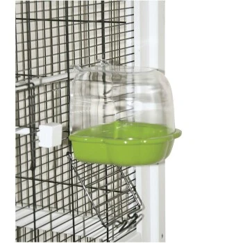 Diese verfügt über insgesamt 3 Gittertüren: eine Große in der Front (57×31,5cm), und 2 seitliche (12×9,5cm), die je einzelnt verschließbar sind. Hier können Sie Zubehör wie ein Vogelbad anbringen. Mit Hilfe der kunststoffbeschichteten Streuschublade lässt sich der Käfig leicht reinigen.