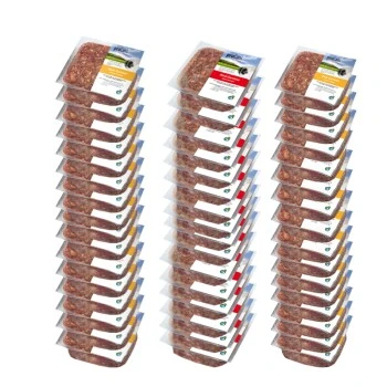 Die Mischung aus Rind Carnivor, Huhn Carnivor und Ente Carnivor bildet eine ausgewogene Grundlage für eine optimale Nährstoffversorgung. Das enthaltene Set, bestehend aus Muskelfleisch, Organen, Knochen sowie Pansen, liefert derweil ein anregendes Geschmacksspektrum. Das “Carnivor“ Paket enthält zahlreiche Mineralstoffe, Vitamine und Spurenelemente. BARF verzichtet beim Tierfutter vollständig auf den Zusatz von Konservierungsstoffen und anderen Zusätzen wie Zucker.