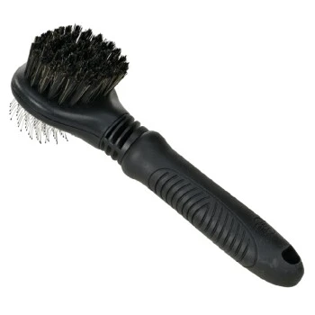 Durch das Bürsten mit der TAKE CARE 2-in-1-Zupfbürste in Haarwuchsrichtung werden Verfilzungen und abgestorbene Haare schonend und sanft entfernt. Die Bürste ist besonders geeignet zum Auskämmen der Unterwolle bei lang- oder rauhhaarigen Hunden. Durch die leichte Krümmung der Stifte und das weiche Bürstenfutter ist eine gründliche Reinigung des Tieres ohne das Ausreißen von lebenden Haaren möglich. Außerdem massiert die Bürste angenehm die Haut. Die Naturhaarborsten-Seite entfernt feinen Staub und sorgt für einen seidigen Glanz. Der ergonomisch geformte Softgriff liegt besonders gut in der Hand.