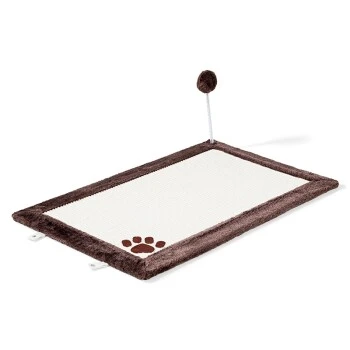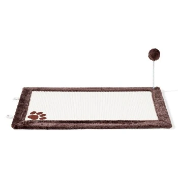 Diese Kratzmatte mit Plüschrand und robuster Sisaloberfläche ermöglicht Ihrer Katze, ihren natürlichen Kratzbedürfnissen nachzugehen und unterstützt die Krallenpflege. Besondere Beschäftigung bietet der Ball auf einer Spiralfeder. Die Unterseite der Kratzmatte besteht aus Moosgummi und verhindert dadurch das Verrutschen auf glatten Böden. Die Kratzmatte kann aufgehängt oder hingelegt werden.
